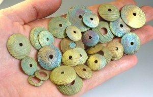 And the bead holes shrunk! I now have holes that need to be enlarged in order to fit my tubing since these were supposed to go on a bunch of hollow cored beads. Just waiting on my bead press. Waiting, waiting…